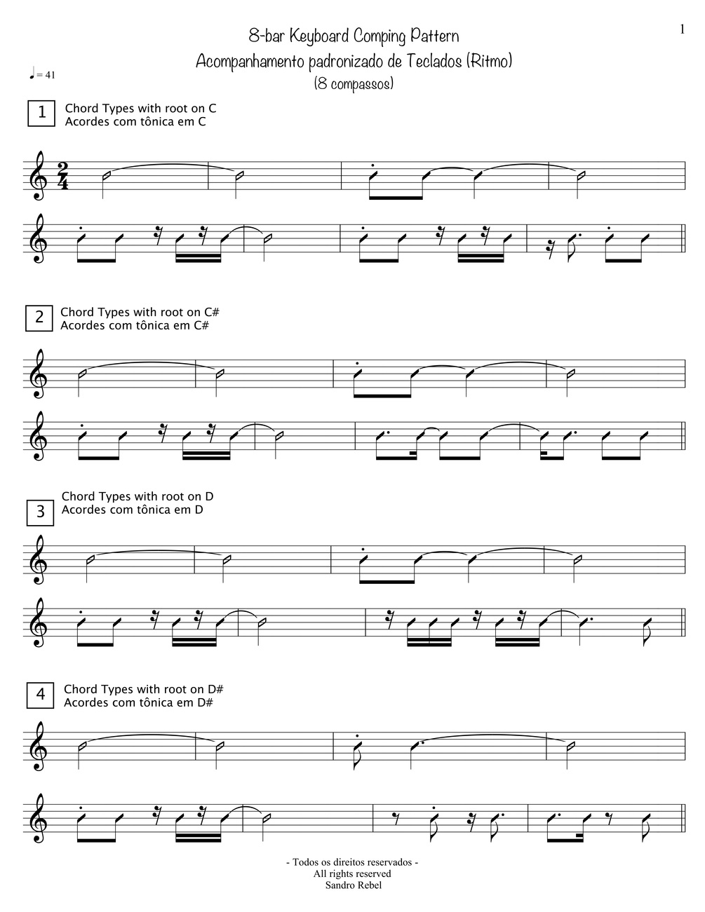 - Partituras com 24 exemplos de acompanhamentos de Bossa Nova para piano